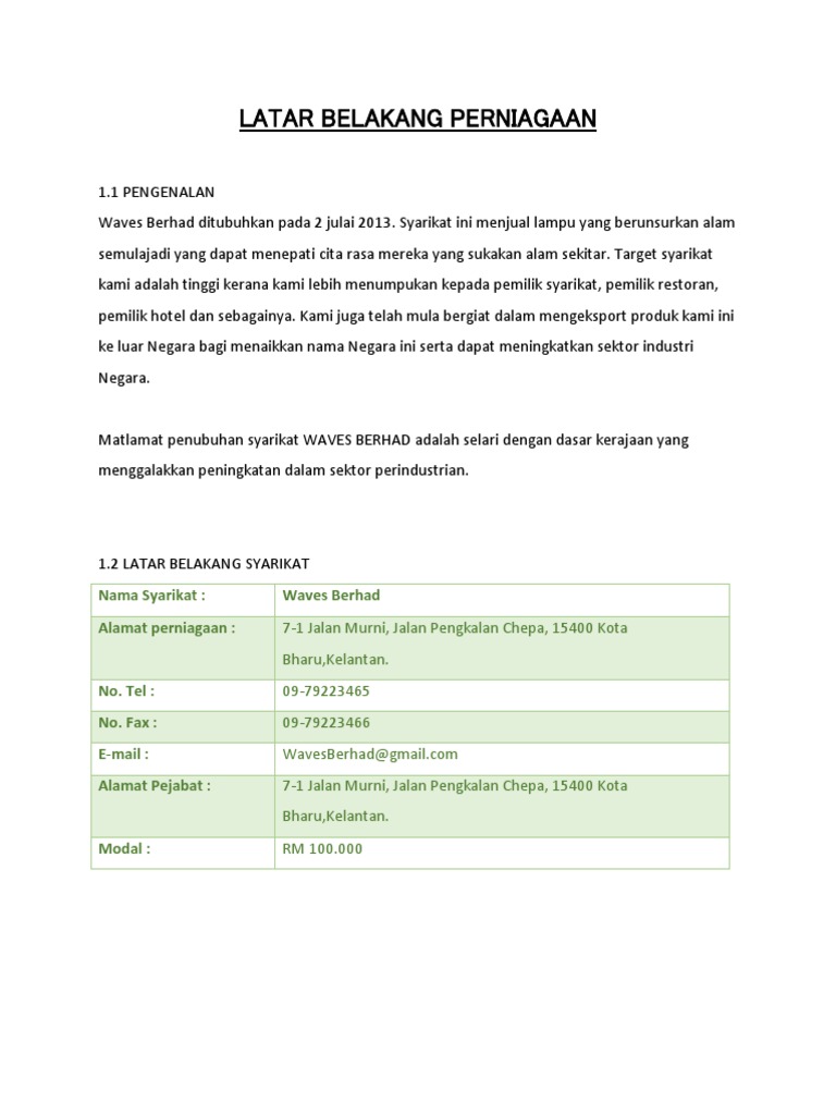 Latar Belakang Perniagaan Nama Syarikat Waves Berhad Alamat Perniagaan